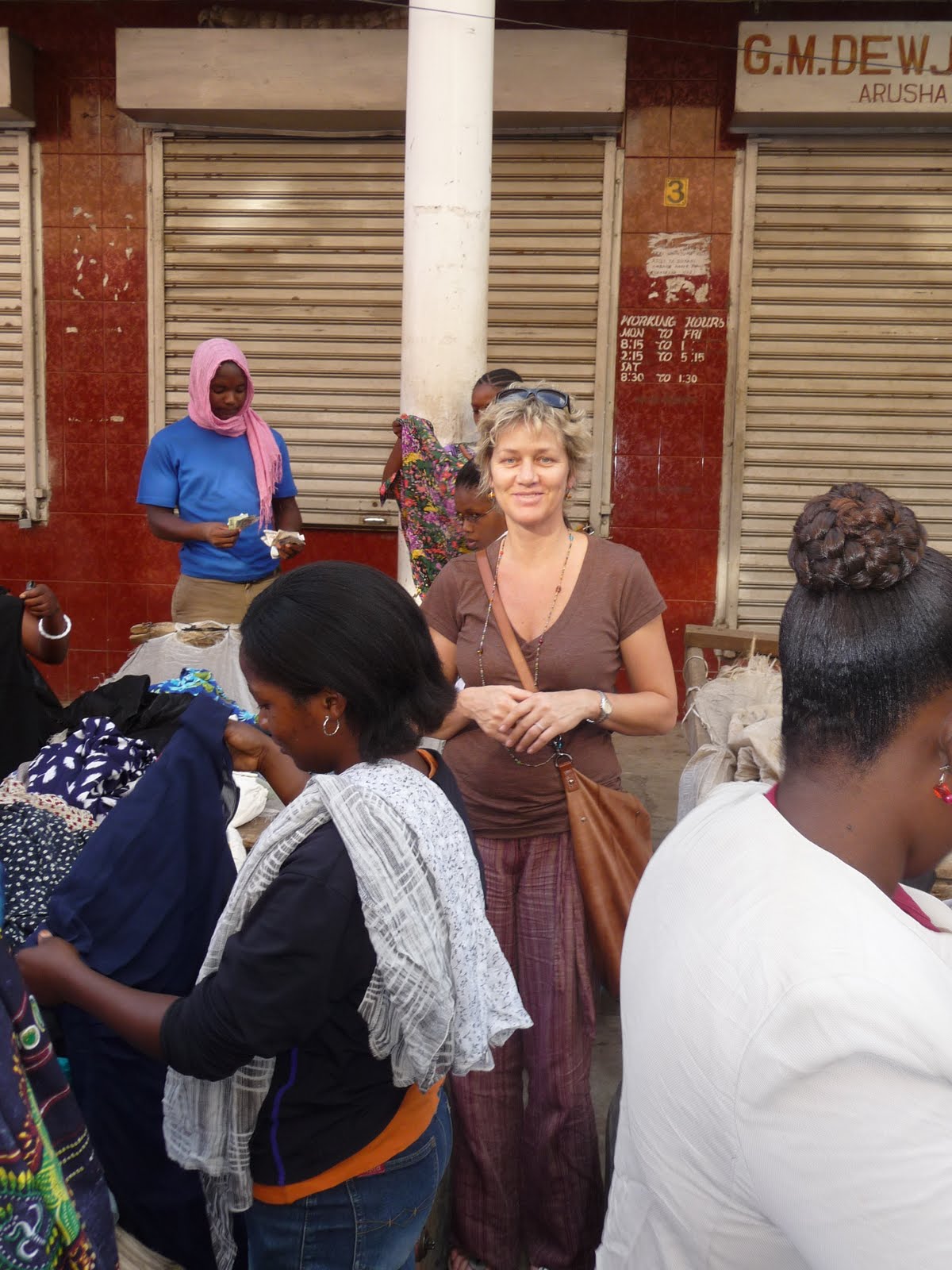 After experiencing a few days of eating the basic food which consisted of about 12 ingredients, I wondered why my experienced travel partner hadn’t brought a rucksack full of chocolate, granola bars, real coffee, spices,etc. Our instructions were” All of your personal belongings will have to fit in a carry-on bag because we’ll need all our checked baggage for donations”. What! Have you seen my closet!!! And I have size 10 feet! Being used to living with a foodie like Matthew, It got pretty tiring eating bland beans and rice and processed white bread with one ingredient being “bread improver”. But by the end, I realized the wisdom of my dada(sister). I was grateful that we could interact with all these people who had so little(some families literally not knowing where their meal would come from tomorrow, relying on donations from neighbours) and feel that we used our resources wisely and instead supported the local economy. Now don’t get me wrong! We did not go without! We did indulge with our evening at the Kilimanjaro Resort and our pizzas and Indian food any chance we went into the big town of Moshi. And oh how wonderful that cold beer tasted at 5pm on the porch! It made it that much more enjoyable! And I did manage to stimulate the economy. Those fabrics! Such beautiful patterns and colours.